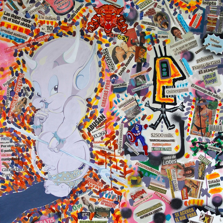 En octubre la Fundación Euroidiomas presenta la exposición “2 x 1 (In)Cultura Visual” a cargo del experimentado artista Herbert Rodríguez y del joven pero ya destacado artista Toño Nuñez. Artistas de distintas generaciones que expresan su fascinación por la iconografía urbana de Lima, aquella en la que no se identifica al autor y que circula profusamente por múltiples ámbitos cotidianos de miles de personas.